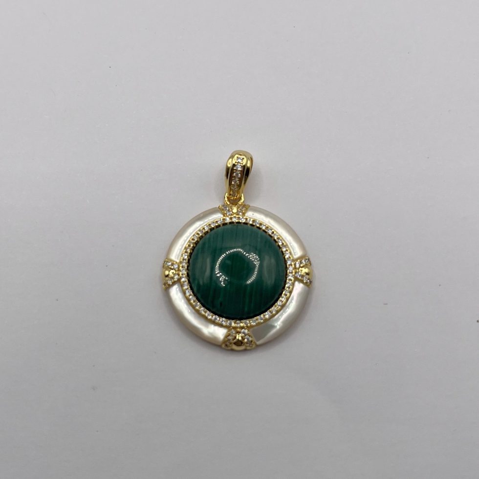 Medallón de nácar, circonita y centro malaquita