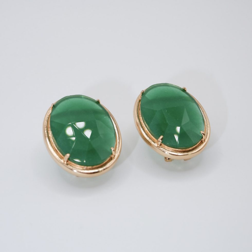 Pendiente ovalado bañado en oro 18k con piedra agata verde y cierre de omega