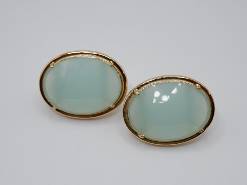 Pendiente ovalado bañado en oro 18k con piedra aguamarina y cierre de omega
