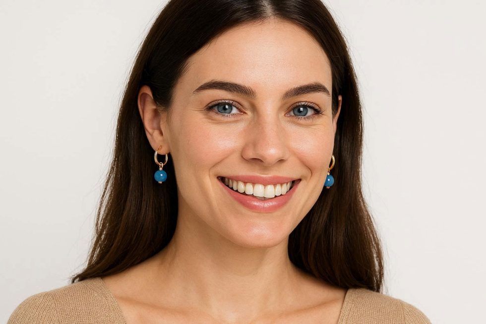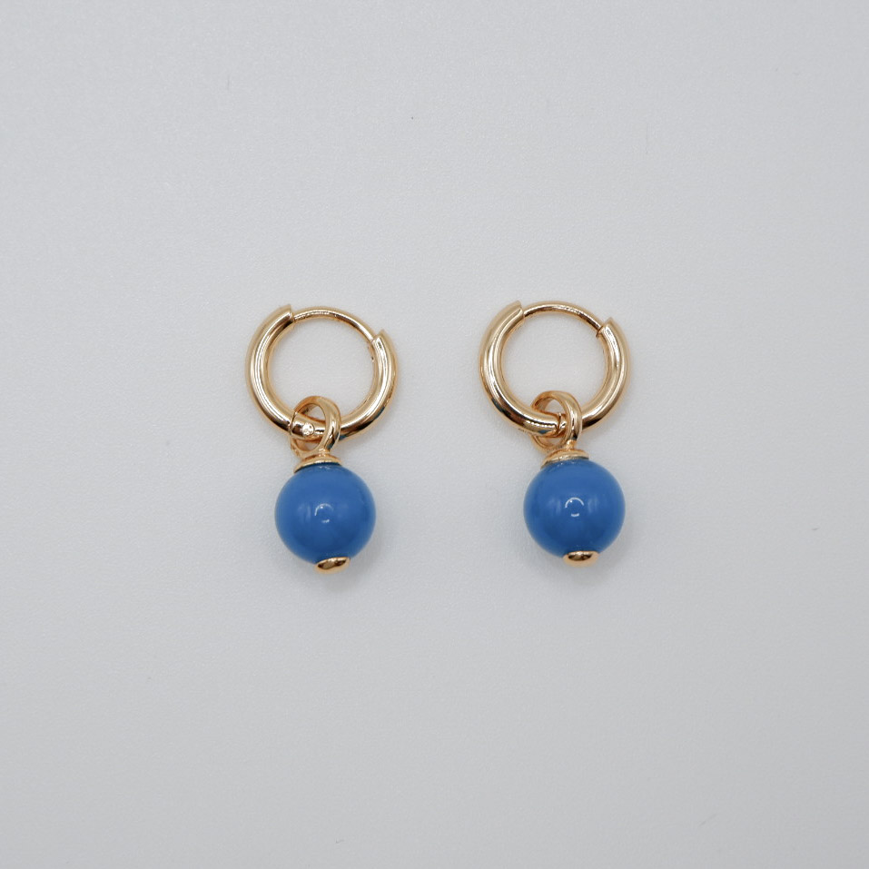 Pendientes criolla bañados en oro 18k con piedra natural ágata azul