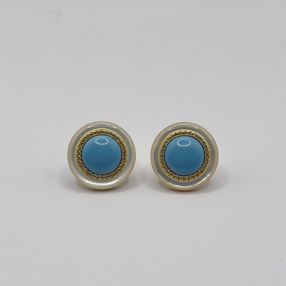 Pendientes bañados en oro 18k de nácar y círculo en circonita, centro turquesa