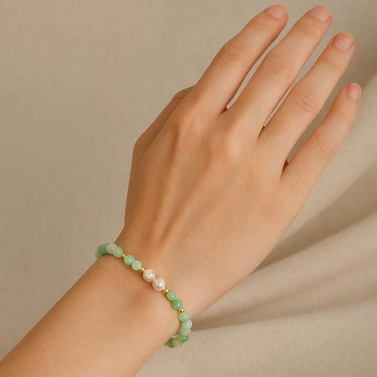 This item: Pulsera elástica, perlas naturales y aventurina verde natural